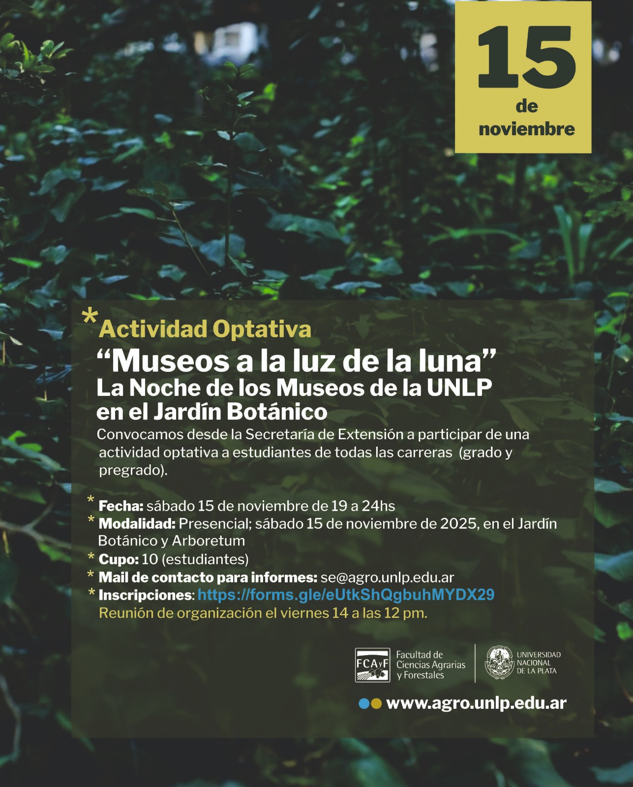 MUSEOS A LA LUZ DE LA LUNA. La Noche de los Museos de la UNLP (en el jardín botánico)