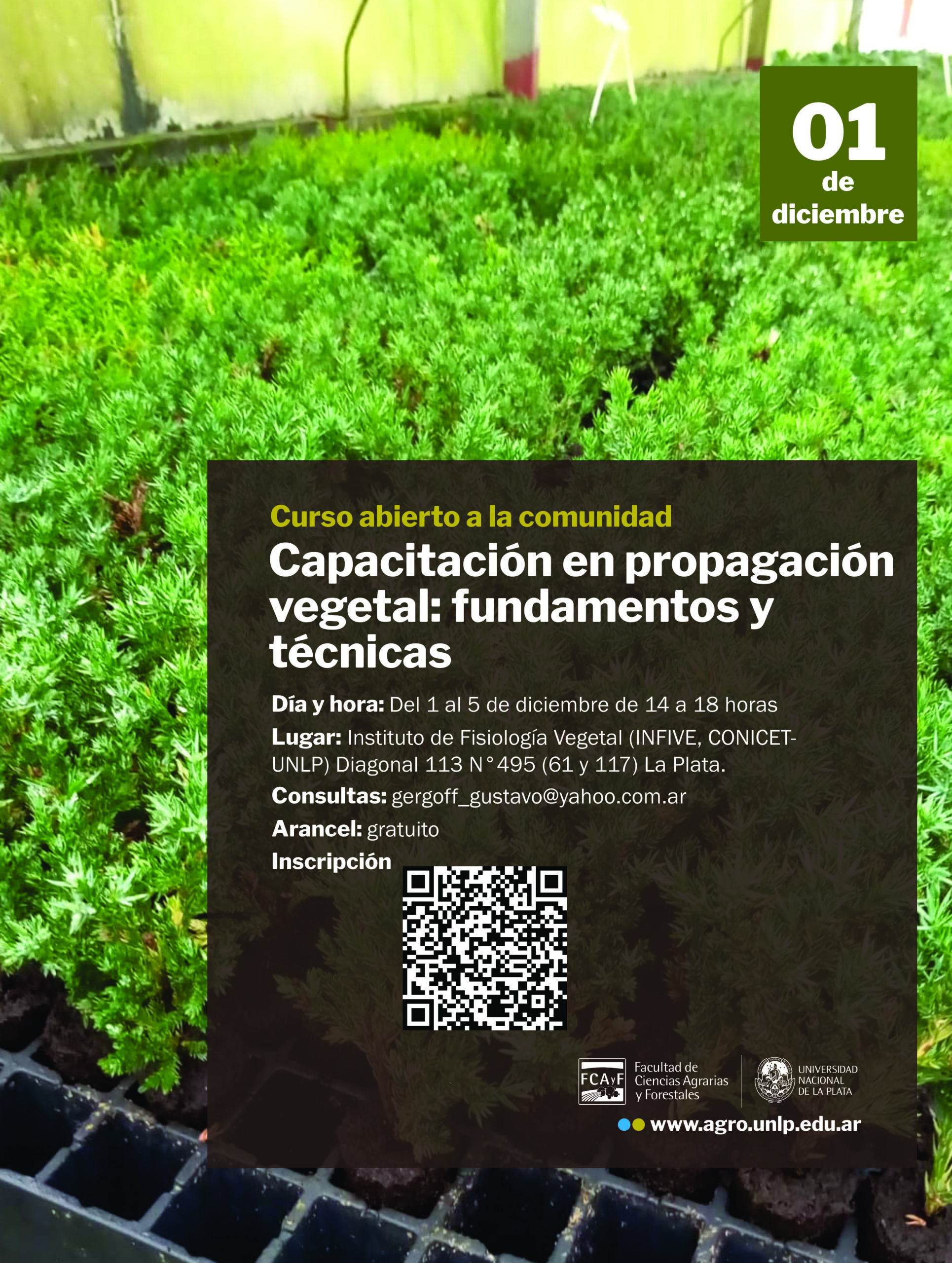Lugar de realización: Instituto de Fisiología Vegetal (INFIVE, CONICET-UNLP) Diagonal 113 N°495 (61 y 117) La Plata. Buenos Aires.